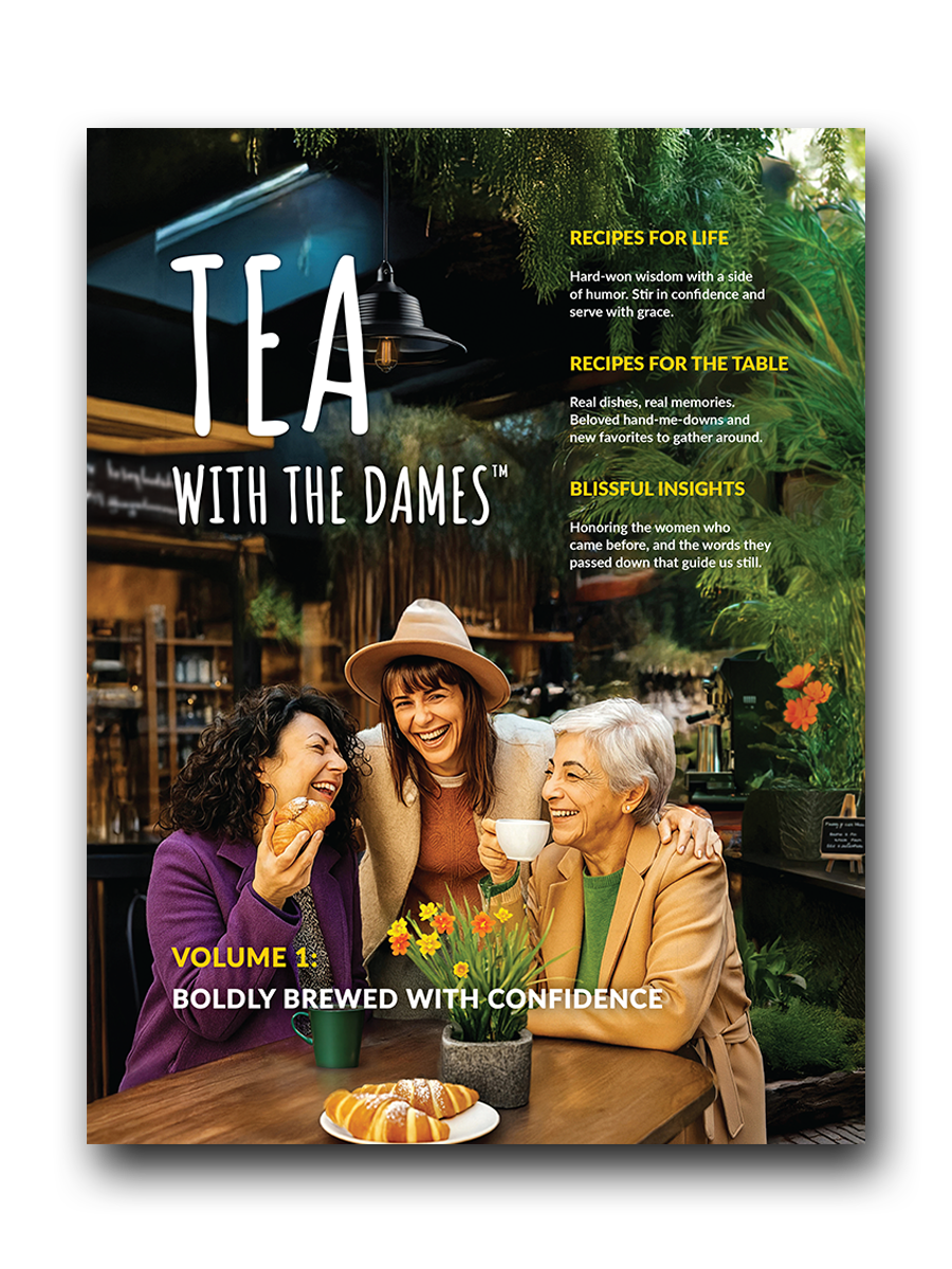 Tea with the Dames™ is a collection of conversational volumes blending real-life advice, generational wisdom, and table-worthy recipes from women, all served with humor and heart.